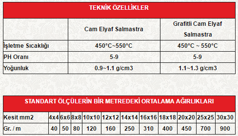 Tanım: Cam elyaf salmastra daha sonra grafit kaplama işleminden